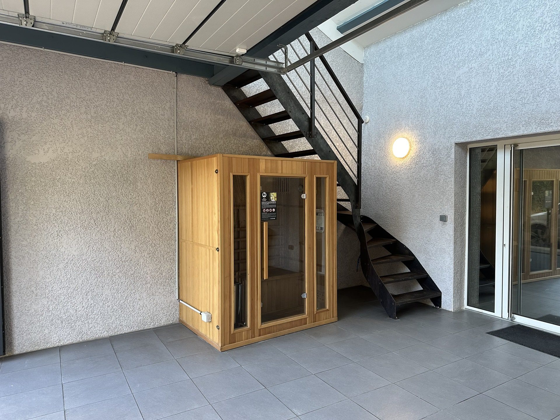 Le loft, une prouesse de design, vous accueille dans son espace ouvert où la cuisine entièrement équipée s’unit harmonieusement au séjour. Plongez-vous dans le confort de notre salon spacieux, équipé d’un coin TV parfait pour vos soirées détente. À l’étage, une chambre baignée de lumière avec son propre coin salon vous invite à des nuits paisibles. Profitez également d’une salle de bain équipée d’une baignoire balnéo double, et d’un sauna pour une relaxation ultime. Avec un garage privé intégré, accédez directement à votre havre de luxe, sans souci et en toute discrétion.